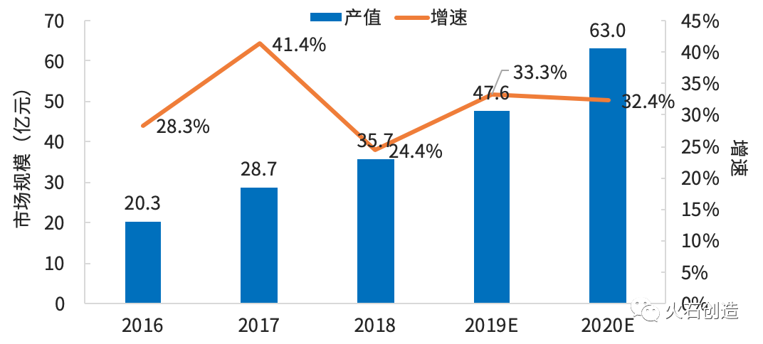 根据火石创造发布的《国内医疗机器人市场规模及增速趋势》,自2014年中国开始引入外科手术机器人,中国医疗机器人市场规模逐年增大,且保持者高增速。2018年国内市场规模达35.7亿元,预计2020年有望超63亿元。